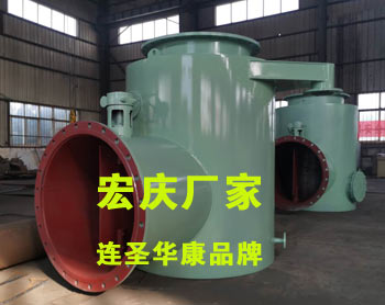 4、分匯器是一個(gè)三通閥,通過導(dǎo)向板的切換可使膠球進(jìn)入需要清洗的一側(cè)凝汽器中工作。一般一臺機(jī)組需兩臺分匯器,其進(jìn)口通徑為DN100,分配口為DN89,膠球投用時(shí)可通過窺視窗觀察運(yùn)行情況。FH型分匯器(清潔海綿膠球切換三通管閥)